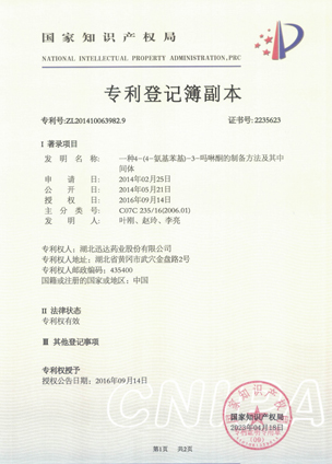 公司擁有一支高素質(zhì)科研隊(duì)伍,具備專業(yè)而高效的研發(fā)能力。近幾年,共取得科技成果30項(xiàng),其中9項(xiàng)獲國家發(fā)明專利,2項(xiàng)獲湖北省科技進(jìn)步獎,開發(fā)新產(chǎn)品8個,綠色合成、手性合成和催化等技術(shù)引領(lǐng)行業(yè)發(fā)展。主要銷往歐美、日本、韓國、中東、印度等40多個國家和地區(qū)。